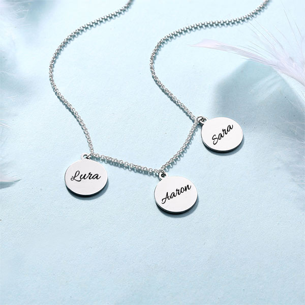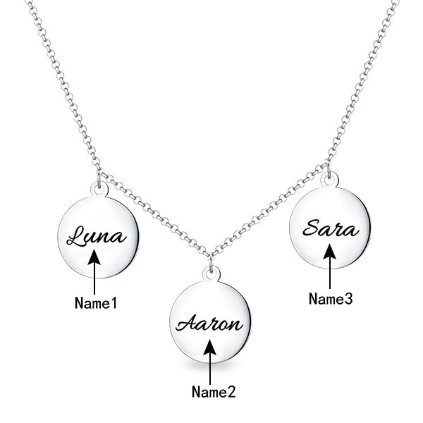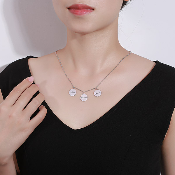 Make it a special day every day for whoever gets this stunning Personalized Triple Coins Necklace . The perfect gift for anytime of the year! Select the name of your choice to be engraved on up to 3 coins on this sterling silver necklace. This special disc necklace comes with a sterling silver rolo chain. This coin necklace is perfect for any occasion - dress it down or up! Simple and classy!