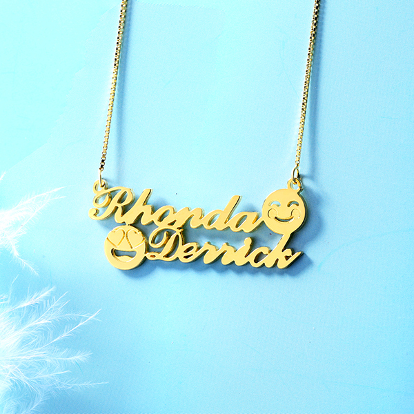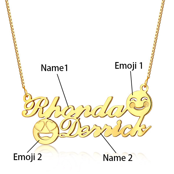 The classic double name necklace style with two Emoji express the importance of people you memorized and love, set show and say different emotions with their different facial expressions, let your life more interesting. Unique design, which combines jewelry and life, creates new concepts of Jewelry. You can engrave two names and choose two emojis you want. It is the best gift for your lover friends and family with a FUN attitude!