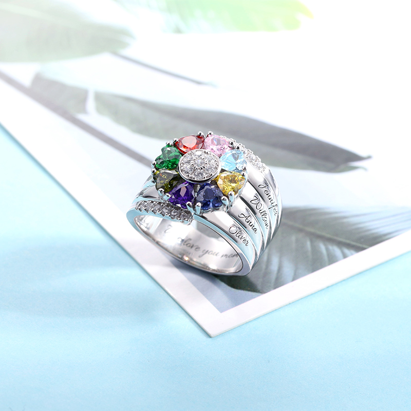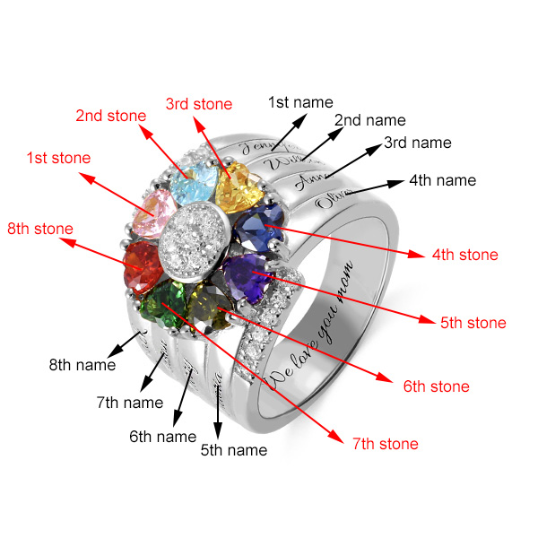 Eight heart-shaped birthstone are grouped together, standing for each one you loved to express close connection of the whole family. Engraving the name of family member and best wishes for all of them. It is great jewelry for your mom and grandma to remember of the time that children or grandchildren spend together. She will feel that you are always around her and support her.
