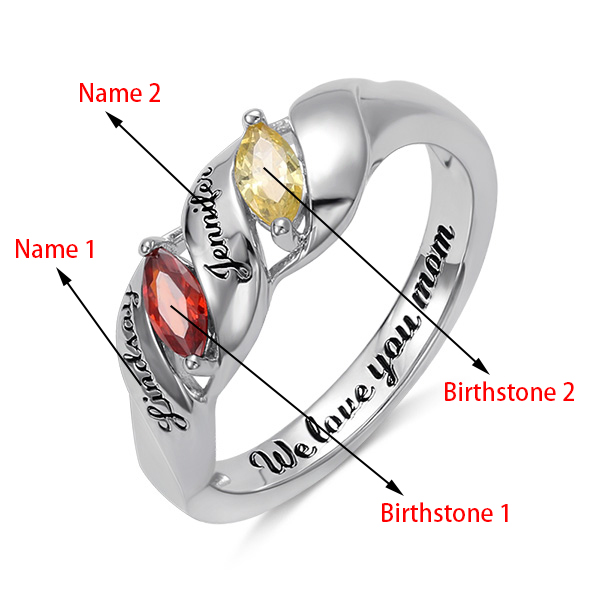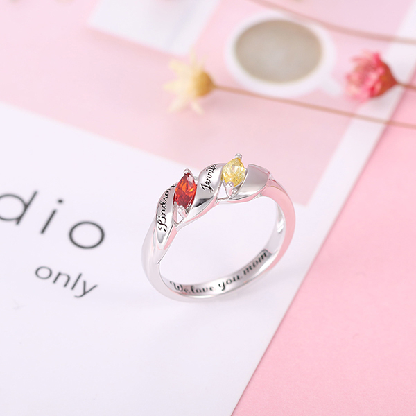 Cherish your loved ones and family with this elegant ring decorated with horse eye birthstone. You can design it with your choice of 2 Birthstones, engraving 2 names and a special date or phrase inside the ring band. Give her a special day with this ring as a gift. It will be a big surprise! Let your love truly shine with this stunning ring for her.