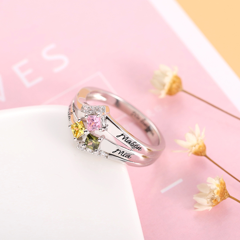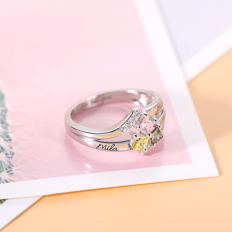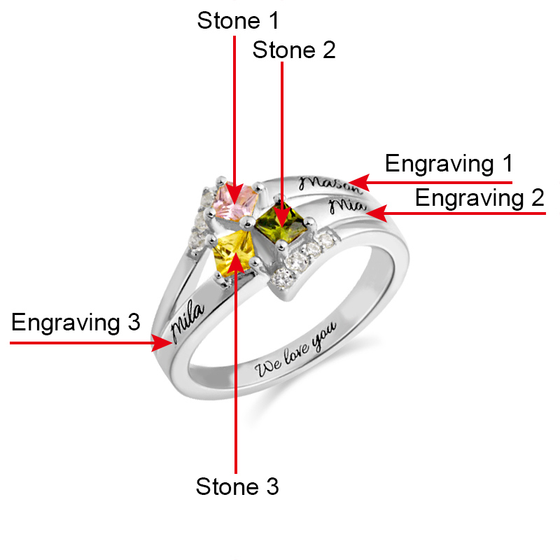 This dazzling ring design features three shimmering diamonds, artfully set to enhance size and sparkle. Engraved inside to remind you of your loved one, children, happiness, gifts, memories. It’s the simple beauty of a stone and often a modest design, combined with the dream of many women about the day they receive it….and the promise of eternal love.