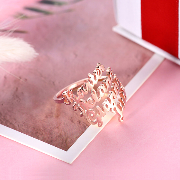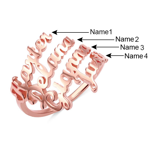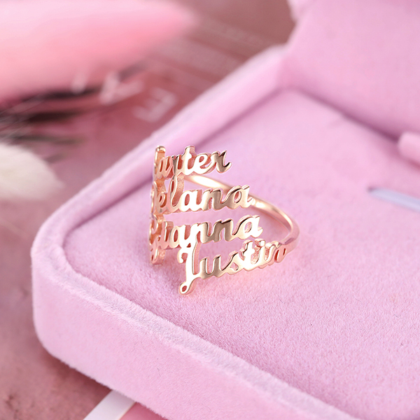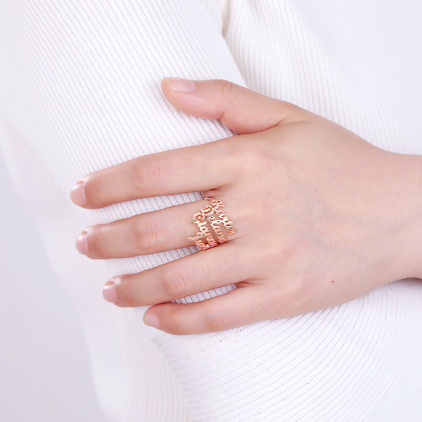 This personalized four name twist ring is a kind of special way to symbolize your personality and show your love for your family or friends. You can have four names of your loved ones on this ring and keep them around you whenever you are. It would be very surprise and touching for them to see their names on your fingers which is made just for them!