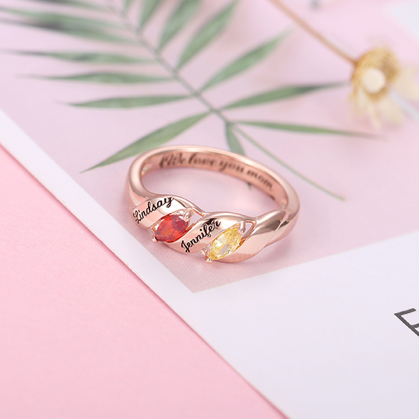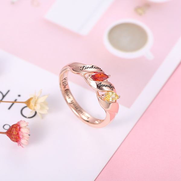 Cherish your loved ones and family with this elegant ring decorated with horse eye birthstone. You can design it with your choice of 2 Birthstones, engraving 2 names and a special date or phrase inside the ring band. Give her a special day with this ring as a gift. It will be a big surprise! Let your love truly shine with this stunning ring for her.