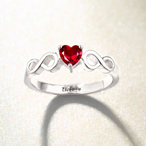 Our Engravable Heart Birthstone Infinity Ring lets you choose a beautifully colored cubic zirconia to represent the one you love. This ring has the elements of love heart and infinity, by combining them together, it creates the ring that shows love can be infinity.This custom-designed personalized birthstone ring is handcrafted of solid sterling silver.The simple and elegant design of the ring is comprised of a shining CZ birthstone of your choosing. For an even more personal touch, the inside of the ring can be engraved with a name, initials, or a special date. This custom heart birthstone ring would make a beautiful gift for Mother's Day or an anniversary, and will be treasured for many years.It is the perfect jewelry gift and also a fine value.so high demand is expected. Don't wait! Be sure to order now!
