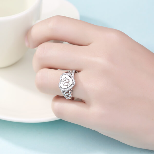 Engraved Heart Sterling Silver Monogram Ring is the ring for everyone.This beautiful heart ring is set with sparkling white CZ surrounded and it look shining and fashion .The Heart CZ Monogram Ring is as a elegant pieces that are meant to be worn every day. It is made of 925 silver and comfortable to wear, so don't delay. Order now!
