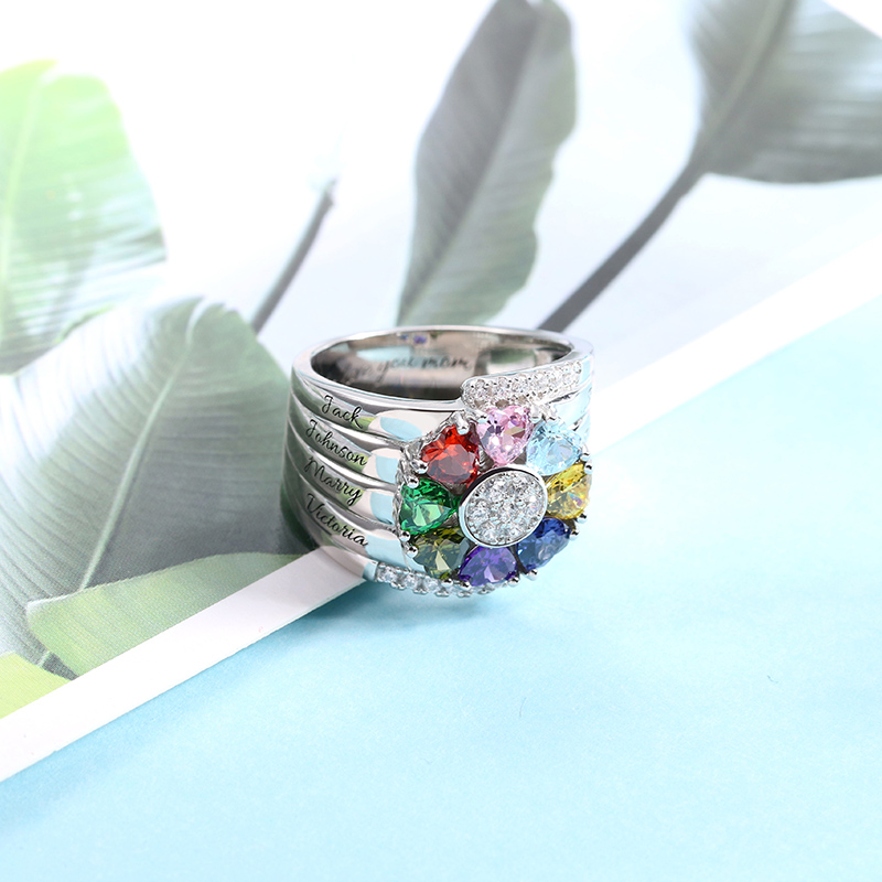 Eight heart-shaped birthstone are grouped together, standing for each one you loved to express close connection of the whole family. Engraving the name of family member and best wishes for all of them. It is great jewelry for your mom and grandma to remember of the time that children or grandchildren spend together. She will feel that you are always around her and support her.