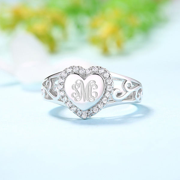 Put the important person in your heart . This Custom Heart Shape With CZ Monogram Ring will be a unique ring to show it .For a classic monogram order, place your last name initial in the middle. Please type your initials in the order you would like them to appear in the monogram. Your personalized ring comes in a pretty gift ring box ready for gift giving, it is a gorgeous personalized gift for any occasion .