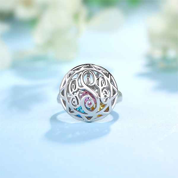 This Engraved Monogram Cage Ring With Heart Birthstones is carefully crafted in cage look. The heart birthstones and metal colors are all selectable. The gorgeous lines are brought to life by the elegant curves of monogram. Feeling the unique process of customization. This ring is the best gift for female and surely suitable for any occasion.