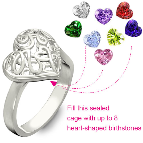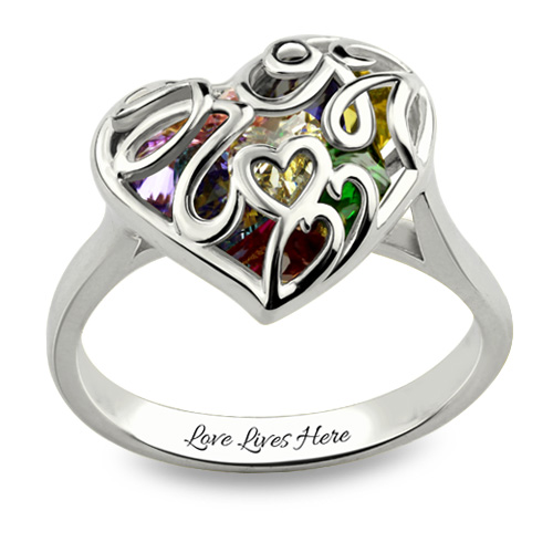 This Mom cages ring is the most exceptionally personalized and one of a kind gift you can give for your wife and mother. The feeling words you can engraving inside of ring. The large cage size allows space for up to 8 heart birthstones to make the ring even more special!
