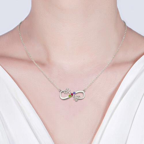 This Infinity Necklace with Tree Branch symbolize strength and wisdom, stand for a family. Infinity necklace surrounded by branches, you can choose three birthstones, It is a special gift for her or her friends.