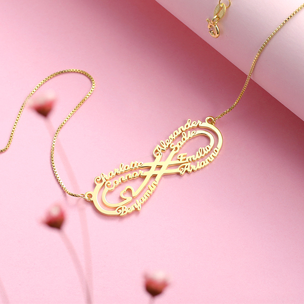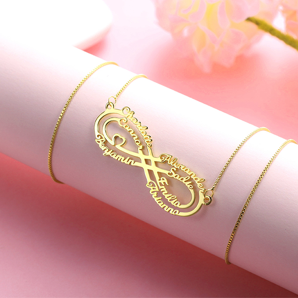 With infinity so popular in the world, have you got one for youself or your loved ones yet? No? Well, you should! Especially now you can engrave up to 7 names on our infinity necklace, it can make a perfect gift for your mom or grandma with all of your names on it, your beloved mom or grandma will feel accompanied when you can't be there for her yourself! And you get to show your beloved ones your love for them is eternal and will never fade!