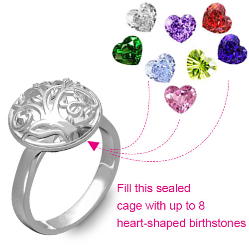 This Mom cages ring is the most exceptionally personalized and one of a kind gift you can give for your wife and mother. The feeling words you can engraving inside of ring. The large cage size allows space for up to 8 heart birthstones to make the ring even more special!