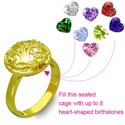 This Round Cage Family Tree Birthstone design by family tree of the cage ring, with 1-8 heart birthstones for your option, not only nice design, but also good meaning, It is best gift for mother, wife or female friends.