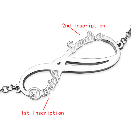 Everyone loves the infinity symbol around your neck or wrist, but this sterling beauty takes things to the next level.Two name on each side of infinity for a truly meaningful gift.
