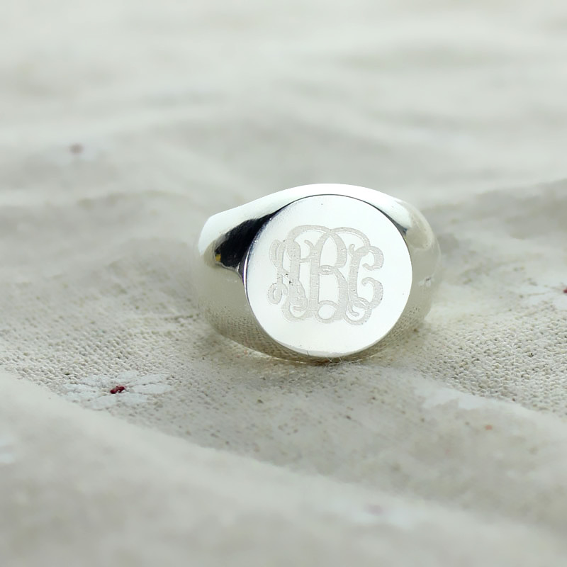 Get three initials engraved on a radiant monogram signet ring and wear it to attract compliments for your choice of jewelry. The best thing about this ring is that it can be gifted to a loved one of either gender by getting their initials engraved on the piece. Place your order today!