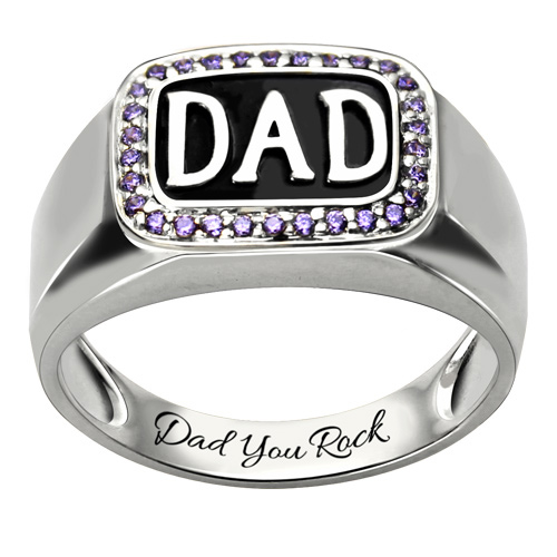How great is Dad? On a special day, treat him to a handsome sterling silver ring that is all about him.The "Dad" inscribed style is brightened by circle birthstone s.A look this thoughtful let's Dad know just how wonderful he is.