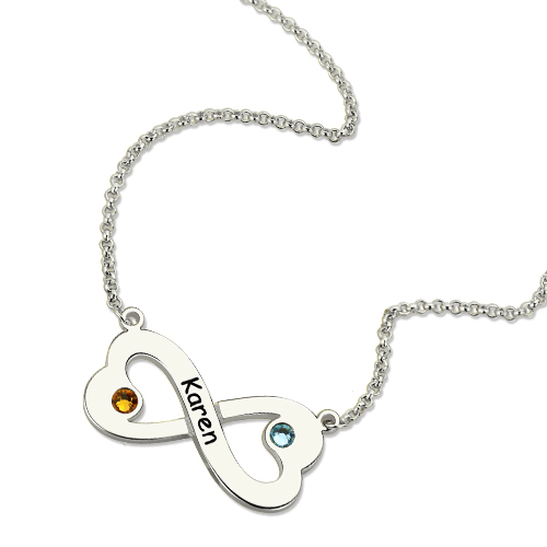 There is no better way to show off your infinite love for someone else than this Heart Infinity Necklace with Birthstones. Each infinity heart is adorned with different color of cubic zirconia of your choice. You will love the effortless way your name engraved on the infinity symbol to create a necklace you will love forever.