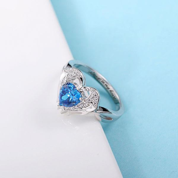 Crafted in sterling silver,this ring features an eyecatching design with heart shaped birthstone and wings of angel.