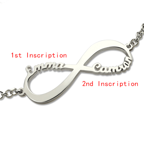 Infinity 2 Names Bracelet comes with a personalized style and an elegant design. Choose any name or word for yourself or those of a loved one and add a personal touch to the wristlet. The name on the armlet are curved out in a charming font, which will showcase your exquisite taste in jewelry
