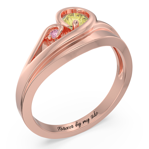 This elegant swirling ring is the mainly made of two embracing gemstones . It is like a crown, elegant, noble, adding to the beauty of fashion. It is an original and perfect ring which is designed to express promise. This ring is original designs jewelry for promise by Callie.com.It is Available in genuine gemstone or simulate stone, and customizable with engravings, give a special someone the royal treatment with this beautiful piece.