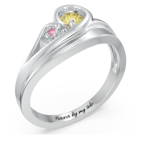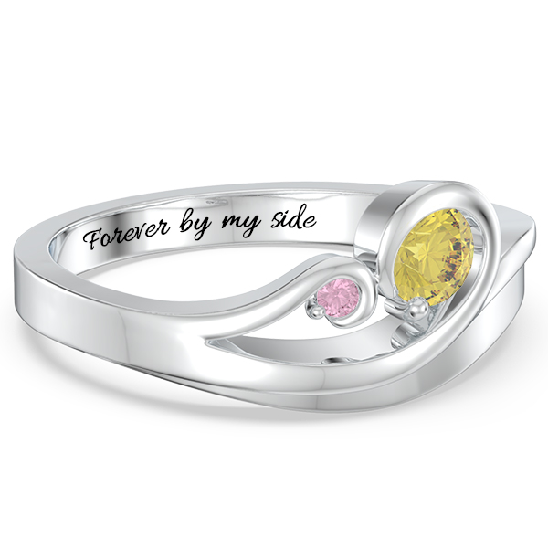 This elegant swirling ring is the mainly made of two embracing gemstones . It is like a crown, elegant, noble, adding to the beauty of fashion. It is an original and perfect ring which is designed to express promise. This ring is original designs jewelry for promise by Callie.com.It is Available in genuine gemstone or simulate stone, and customizable with engravings, give a special someone the royal treatment with this beautiful piece.