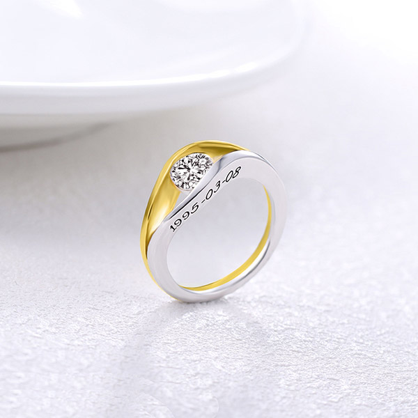 Experience a remarkable display of color and light in a stunning union of jewelry sophistication and a uniquely beautiful stone ring. The shape of the angel's eye, with a delicate birthday stone, is more eye-catching. The custom inscription on the silver and yellow sides of the ring brings personalized features and increases the sense of exclusivity. It is a is perfect engraved gift to celebrate an anniversary, Mother's Day, and many other special occasions.