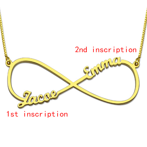 Our Infinity Name Necklace provides the best way for you to show off what the word "forever" means to you. You can get up to two names or words on each loop of the infinity symbol. This is the perfect personalized infinity necklace to wear. Get your name and your significant other on this name necklace. You can also get the names of best friends, inspirational words, children, or anything else you can think of. This customized infinity necklace also makes a great gift to give someone