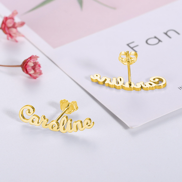 Have you ever wondering to wearing a special name or word on your ears?This pair of stud earring is a fantastic idea about invite you to create an pair of unique stud earrings by some words which are meaningful for you.Dainty apperance,Simple but cool style,this jewellry is absolutely a creative way to show your difference.