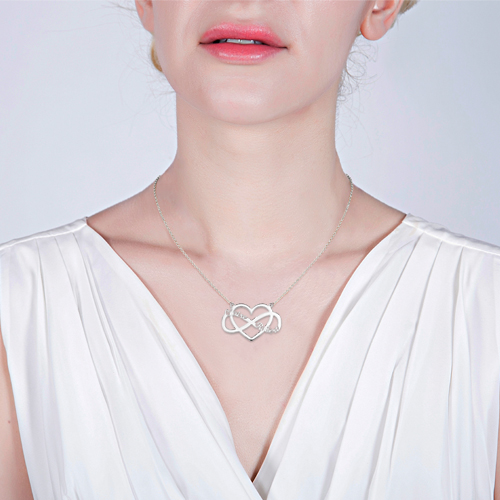 Our Infinity and Heart Name Necklace is a classy and exquisite design.Pamper yourself or your love ones with this magnificent hearts infinity couple 2 name necklace.