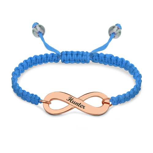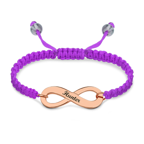 Present your forever love with this Engraved Infinity Symbol Cord Bracelet. The infinity symbol represents eternity, empowerment and everlasting love. It is the ultimate gift to express an unending sentiment of love or friendship. Customize your own today !The Infinity bracelet truly is the most unique and beautiful bracelet you will ever see.