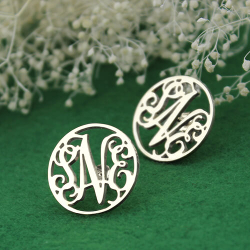 A pair of circle monogram earrings that will be custom cut for you with the fancy initials of your choice. Circle monogram earrings are a great gift choice for a modern girl. A perfect present for a graduate, a BFF or a birthday girl!
