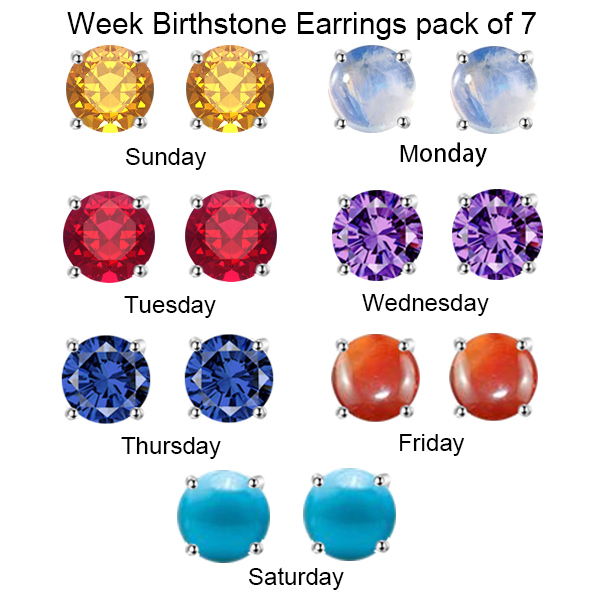 Looking for unique earrings for yourself or as a gift? Don't miss these sterling silver earrings that studded with week birthstones. You will get seven pairs of earnings that represent every day of the week. Each day of the week is associated with one color of birthstone. It is ideal for everyday wear. Grab a fresh look for everyday of the week with these birthstone earrings, to keep you styling Monday through Sunday!