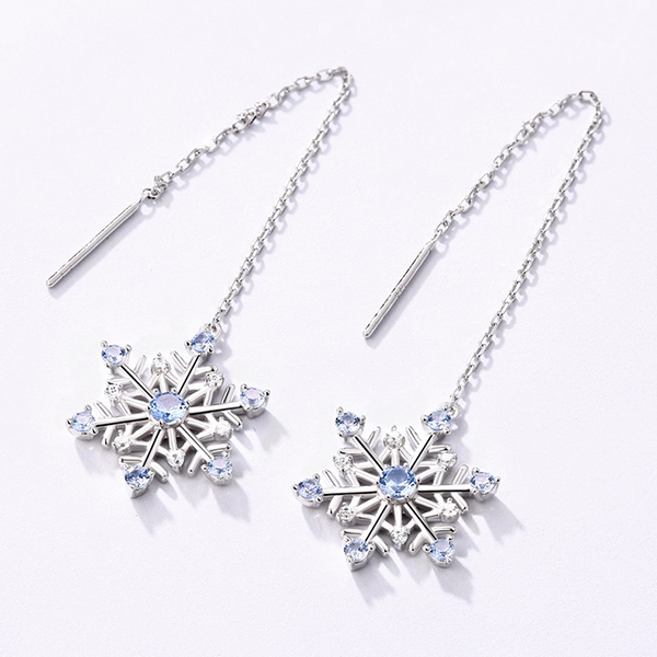 Celebrate this Christmas with our Romantic Snowflake Silver Long Earrings carefully crafted with sterling silver and framed with delicate blue stones, sparkling brightly like a fallen snow. This chic accessory is suitable for daily wear and will infuse elegance and into your style. A lovely gift for women.