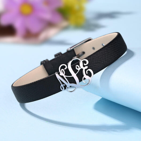 Wear this new style Monogram Leather Belt bracelet and enjoy the latest fashion with any outfit you want. You can personalize it with three letters that means to you, and the belt is adjustable for your wrist. Showing your personality and love with this classic piece now. Suitable for any occasion and would make a lovely gift for women.