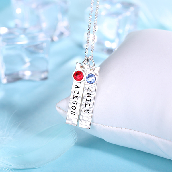 This Hammered Bar Necklace is exquisitely handcrafted with pure silver. The unique design and texture of the delicate piece bring nostalgic vibes to your style and make you more charming. Personalize it with the names of your loved ones and their coordinating birthstones. Ideal for any special occasions (e.g. Birthday, Christmas, valentine’s Day )