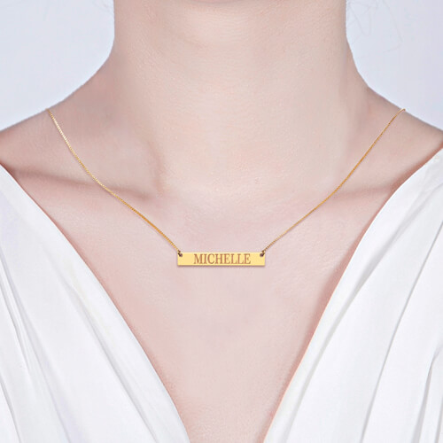 Bar necklaces are so popular right now,Our Bar necklace can engrave any name ,words or symbol you want to on it ,It is fun and fashion ,everyone will want to know where you got that bar necklace because they also own this unique gift.