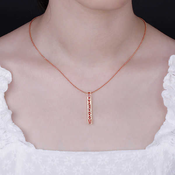Custom necklaces are more popular than ever, and we’ve taken the trend to new heights! Our Personalized 3D Hollow Out Bar Necklace in Sterling Silver is perfect for sharing a name or a meaningful word. This necklace is made with sterling silver, and it hangs from a matching rolo chain. Like other custom bar necklaces from our collection, this stylish option is also available in your choice of 18K gold plating or sterling silver. A fun addition to your own jewelry box, it also makes an impressive gift for mom, grandma, or your best friend.