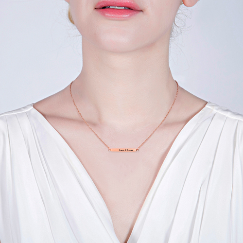 This stunning necklace featuring a brushed bar pendant.Each pendant can have up to 16 characters engraved on four sides. You can choose exactly what you would like on each side, create a meaningful memento. It is a perfect gift to mark the relationship between two best friends, a loving couple or even a mother and child.