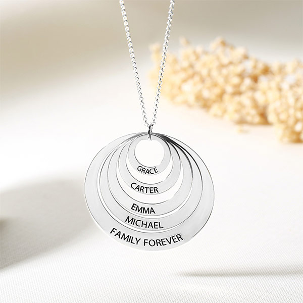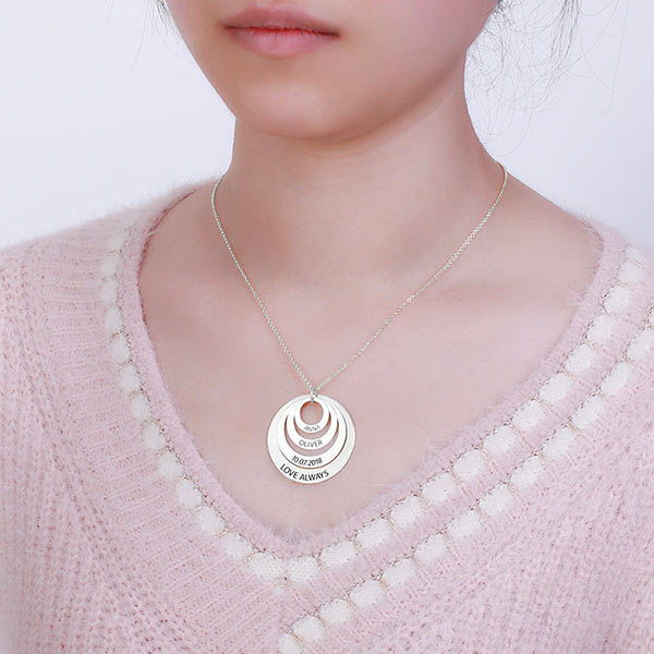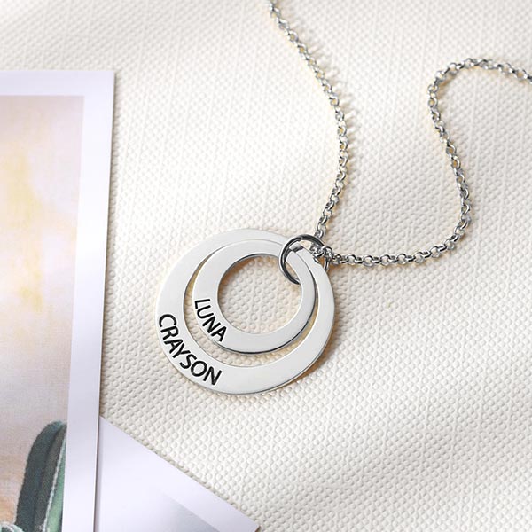 Engraved Family Stacked Circle Necklace Sterling Silver