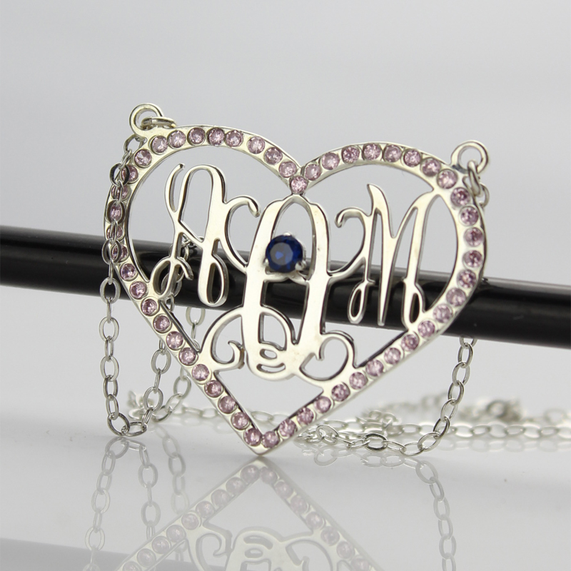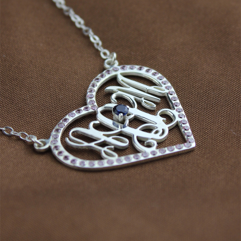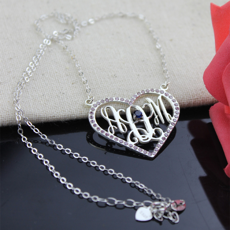 Wear your initials in a heart. Look vibrant with your birthstone magnifying the elegance of the delicate Sterling Silver Heart BirthstoneMonogram Necklace. This ethereal piece of jewelry is designed to make you look more stunning than ever. Send us your initials in the order of your first name, your last name, and finally your middle name.