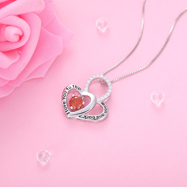 This"l love you to the moon and back" Birthstone Heart Necklace is exquisitely handcrafted with 925 sterling silver. Personalize this chic piece with your choice of the birthstone, symbolizing love from your heart. A fantastic gift for someone special. Perfect accessory to any outfit, ceremonial or casual.