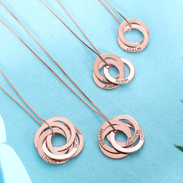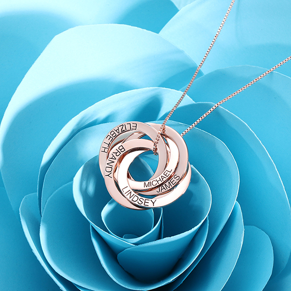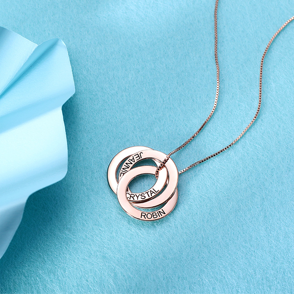 This Russian Ring Necklace is a timeless piece to cherish and a lovely addition to daily outfit. Engraved with names or anything special to you or the recipient of the simplicity and dainty necklace. Each ring is gently hammered for a planished finish and linked together, presenting unbreakable connection and love.