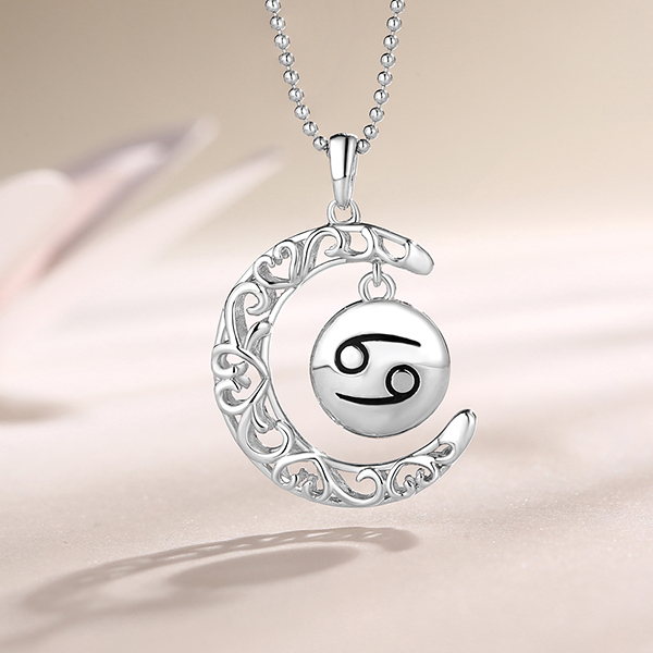 She is the greatest joy in your life and fills your heart with endless love. Now you can let her know how much she means to you with Customized Hollow Moon With Zodiac Sign Necklace. Finely handcrafted in solid sterling silver, this unique and sparkling necklace is made of two parts . Gracefully suspending from the tip of the moon is a round tag with zodiac sign at its center and hollow moon around it, it means protect the loved one. The reverse side of the round tag is elegantly and can engrave the loving letters you like. This love necklace perfect for a birthday, anniversary, wedding, or just to celebrate someone (or something) very special.