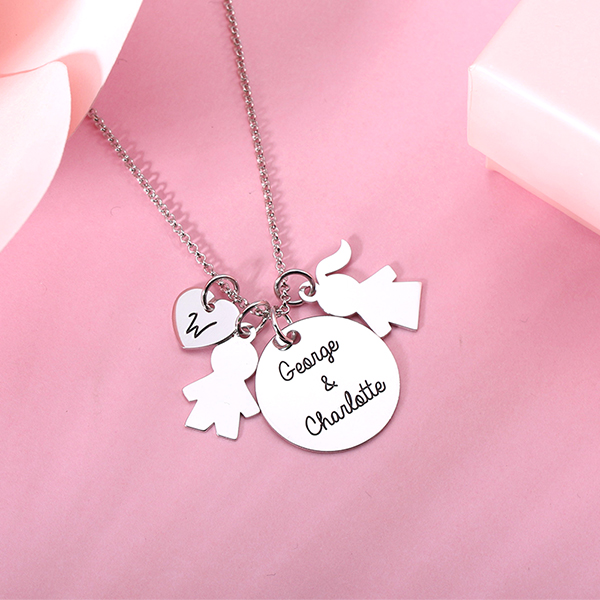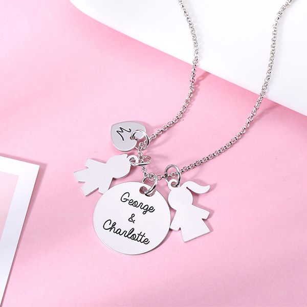 A great jewellery designed for every mom.Crafted in sterling silver,consisted by disc, charm of heart and kids,this sweet and lovely necklace symbolizing gentle but strong bond between mom and their dear kids.Personalized it with name or word,let this unique gift tell your mom or your kids——I am so happy to be an important part of your life.