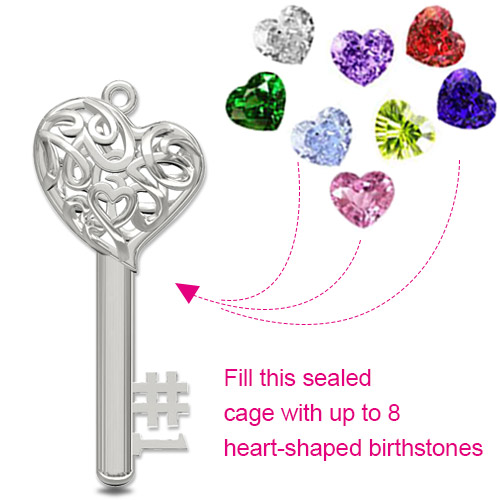 No.1 MOM Heart Cage Key Necklace, you can add 1-8 birthstone into the heart cage,It represent a family get together and deep love. Is an excellent gift for the mother. The shape of the keys can symbolize opening someone's heart and can also be used to give the person you like.