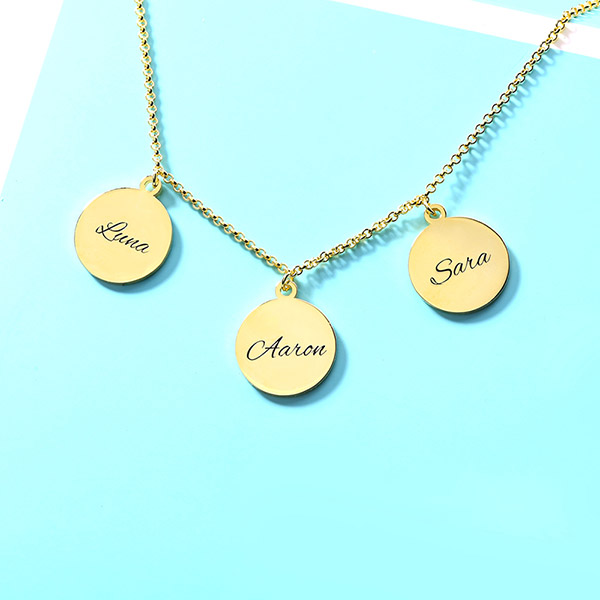 Make it a special day every day for whoever gets this stunning Personalized Triple Coins Necklace . The perfect gift for anytime of the year! Select the name of your choice to be engraved on up to 3 coins on this sterling silver necklace. This special disc necklace comes with a sterling silver rolo chain. This coin necklace is perfect for any occasion - dress it down or up! Simple and classy!